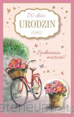 Karnet ślubny z kopertą, złocony i tłoczony, tekst życzeń w środku.