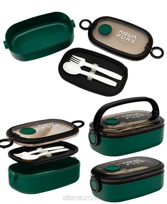 Śniadaniówka Aqua Pure + sztućce green/black ASTRA