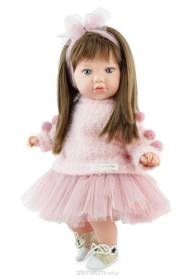 Stylowo ubrana lalka hiszpańska MP764 doskonale wpisuje się w asortyment cenionej marki Marina & Pau, znanej z łączenia pasji, tradycji i innowacyjności. 45-centymetrowa Alina wygląda jak prawdziwa dziewczynka z długimi, gęstymi brązowymi włosami, idealnymi do czesania i projektowania oryginalnych fryzur. Dzięki zastosowaniu miękkiego, materiałowego brzuszka lalka jest świetna także jako przytulanka. Z kolei głowę i kończyny wykonano z wysokiej jakości gładkiego, przyjemnego w dotyku jasnego winylu.