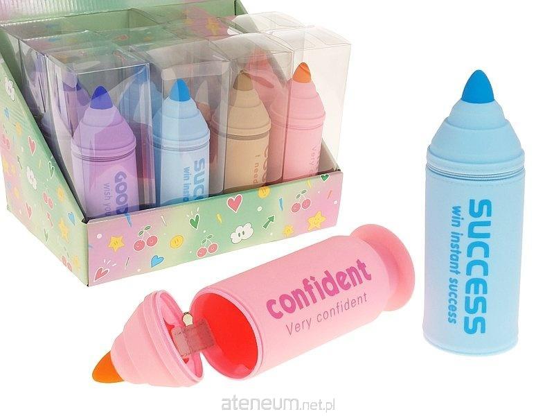 Piórnik silikonowy w kształcie kredki, z przyssawką utrzymującą piórnik w pozycji pionowej, 19,5x6,5cm; 22x7,5x7,5cm; 31,5x23,5x22,5cm