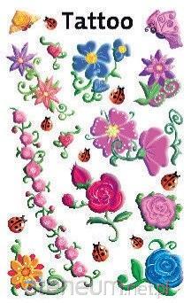Tatuaże dla dzieci w kształcie Kwiatów. Tatuaże są bezpieczne dla dzieci.