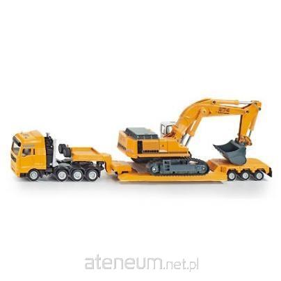 Model ciężarówki wykonany z metalowych i plastikowych części w skali 1:87 z zachowaniem szczegółów pojazdu rzeczywistego, wyposażony w rozkładaną lawetę dostosowaną do przewozu koparki. Stabilna konstrukcja i gumowe koła zapewniają swobodny i bezpieczny przewóz dołączonej do zestawu koparki gąsienicowej, wyposażonej w ruchome elementy umożliwiające nabieranie i przewożenie drobnych przedmiotów.