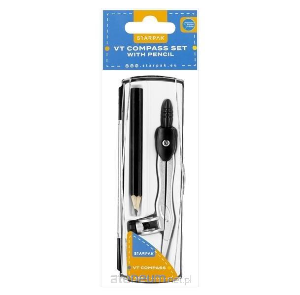 Cyrkiel z ołówkiem w komplecie, zapakowany w etui z szybką.