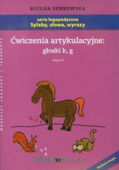 Szósty zeszyt ćwiczeń logopedycznych z serii ?Sylaby, słowa, wyrazy? przeznaczony jest dla dzieci w wieku od 5 do 9 lat z nieprawidłową wymową głosek ?k?, ?g?. Nieprawidłowości polegają najczęściej na zamianie głoski ?k? na ?t? (np. zamiast ?koło? dziecko mówi ?toło?) oraz ?g? na ?d? (np. zamiast ?guma? dziecko mówi ?duma?). Głoski ?k? oraz ?g? mogą być również opuszczane w wyrazach lub (rzadziej) zniekształcane. Materiał zawarty w zeszycie obejmuje ćwiczenia głoski ?k? oraz ?g? osobno oraz ćwiczenia każdej z tych głosekw opozycji: ?k? do ?t? ?g? do ?d?.