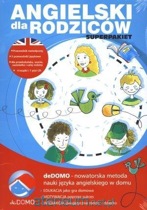 Jesteś rodzicem? Znasz choć trochę angielski? Chcesz pomóc swojemu dziecku w nauce języka, a nie wiesz jak? Angielski metodą deDOMO jest właśnie dla Ciebie! Angielski dla rodziców. Superpakiet to pierwszy kompletny zestaw do wspólnej nauki języka dla całej rodziny. Oparty jest na nowatorskiej metodzie nauki w domu. deDOMO to: edukacja, motywacja i interakcja rodzic dziecko. W skład pakietu wchodzą 4 książki i 7 płyt. 4 książki: Angielski dla rodziców. Przewodnik metodyczny. Angielski dla rodziców przedszkolaka. Przewodnik językowy. Angielski dla rodziców ucznia. Przewodnik językowy. Angielski dla rodziców nastolatka. Przewodnik językowy. 7 płyt: 6 płyt audio CD (6 godzin nagrań scenek i zwrotów) 1 płyta CD mp3 (185 minut nagrań słownictwa). 1 płyta CD mp3 (185 minut nagrań słownictwa) 1 płyta CD mp3 (185 minut nagrań słownictwa).