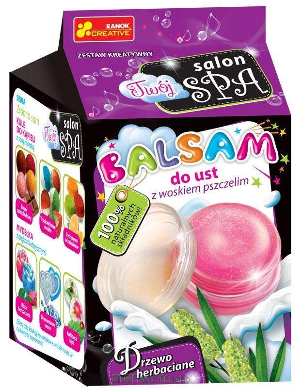 Balsam do ust jest niezastąpionym kosmetykiem. Odżywia, nawilża i nadaje ustom zdrowy wygląd. Idealnie chroni skórę ust przed wysychaniem i pierzchnięciem. Balsam to nie tylko sposób na piękne usta. Może także stanowić wspaniały prezent dla rodziny lub przyjaciół. W zestawie: masło kakaowe, olej, wosk pszczeli, olejek eteryczny drzewo herbaciane, słoiczek na balsam, plastikowy kubek, plastikowa łyżeczka, drewniany patyczek, barwnik spożywczy, szczegółowa instrukcja.
