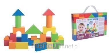 Zestaw 29 elementowych klocków, wykonanych z pianki dla małego konstruktora. Przeznaczone dla dziecka od 18 m-ca życia. Intensywne kolory rozwijają percepcję dziecka. Zestaw klocków daje niepowtarzalną okazję do rozwinięcia wyobraźni, zdolności manualnych oraz koordynacji ruchowej. Poprzez zabawę dziecko uczy się logicznego myślenia, posługiwania się przedmiotami i dopasowywania ich od siebie.