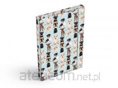 Teczka do przechowywania dokumentów, dyplomów i prac artystycznych. Otworki na gumkę zabezpieczone nitami. Gumka w oplocie wykonana z estetycznej tkaniny. Teczka jest laminowana, dzięki temu bardziej trwała i ozdobiona kolorową grafiką. W środku każdej teczki na okładce plan lekcji, literki i zegar ułatwiające naukę.