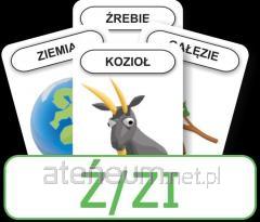 2. "Memory" - gra zalecana jest dla dzieci już od 3 roku życia. Może w niej uczestniczyć od 2 do 5 osób. Do gry należy wykorzystać wszystkie 13 par kart. Można też w zależności od wieku i możliwości dzieci wykorzystać mniejszą ilość par. Karty układa się obrazkami do dołu. Karty można ułożyć w rzędach, bądź luźno poukładać na stole. Następnie każdy z graczy (zgodnie z ruchem wskazówek zegara) odsłania po 2 karty i głośno wymawia ich nazwę. Dziecko, które odkryje dwa takie same obrazki zabiera parę ze stołu. Wygrywa ta osoba, która na po odkryciu wszystkich kart będzie miała najwięcej zebranych par.