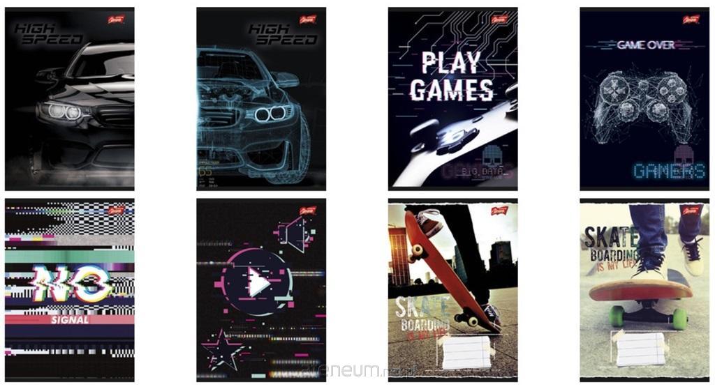 Zeszyt laminowany chłopięcy A5, kratka, 60 kartek, mix wzorów, 10 sztuk w opakowaniu zbiorczym. Zeszyty Unipap charakteryzuje wysoka jakość papieru, estetyczne wykończenia, modna grafika okładek. Okładka kredowa z zadrukiem wewnętrznym o gramaturze 250 g/m2.