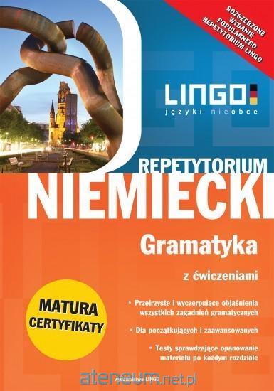 Nie pamiętasz ważnej konstrukcji językowej? Musisz sobie szybko przypomnieć wzór odmiany? Sięgnij po najnowsze, rozszerzone wydanie repetytorium Lingo. Z nim powtórkę z gramatyki niemieckiej będziesz mieć szybciej, niż myślisz! Repetytorium "Niemiecki. Gramatyka z ćwiczeniami. Wydanie rozszerzone" przeznaczone jest dla wszystkich uczących się języka niemieckiego, a zwłaszcza uczniów, studentów, maturzystów i osób przygotowujących się do egzaminów językowych. To świetna pomoc zarówno dla początkujących, jak i dla zaawansowanych.