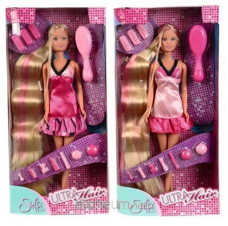 Steffi z bardzo długimi włosami, w błyszczącej sukience, z akcesoriami.