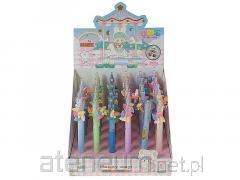 Długopis automatyczny w plastikowej żółtej obudowie w gwiazdki, klip i gumowy uchwyt w kolorze tuszu. Trwała kulka z węglików spiekanych 0,7mm. Szwajcarski wkład z tuszem gładko-piszącym do pisania po wszystkich rodzajach papieru, np. po odwrotnej stronie druków samokopiujących (faktur). 20 sztuk w opakowaniu zbiorczym.