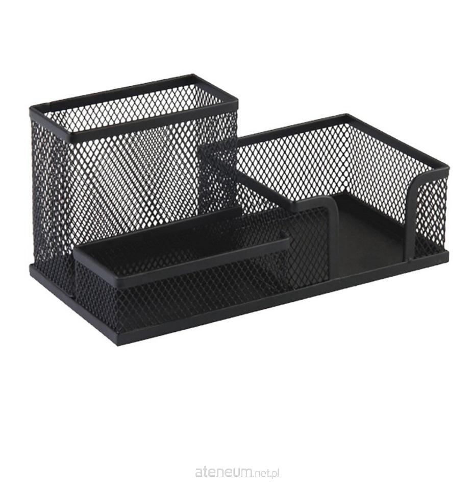 Metalowy, trzykomorowy przybornik na biurko powleczony czarnym lakierem.Wymiary: 205x103x98 mm.