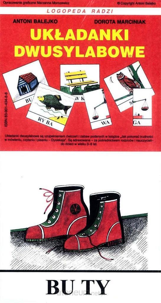 Układanki dwusylabowe i trzysylabowe to dwa komplety złożone po osiemnaście kolorowych obrazków formatu pocztówkowego. Zabawa w rozcinanie kartoników (dzielenie na sylaby) jest czynnością chętnie wykonywaną przez dzieci w wieku przedszkolnym. Pomoc ta służy ćwiczeniu pamięci wzrokowej i koncentracji uwagi. Przydatne do analizy oraz syntezy słuchowej i wzrokowej wyrazów i głosek w słowach, poznawania obrazu graficznego liter drukowanych. Zabawy układankami przygotowują dziecko do nauki szkolnej. Przyjemnej zabawy i miłej nauki! Wymiary kart:18,5 x 10 cm