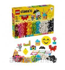 W zestawie bogaty wybór klocków LEGO® w 35 różnych koloracho Zawiera 18 opon i 18 felgo Wśród elementów specjalnych są także: zielona płytka konstrukcyjna 8 cm x 16 cm, okno z ramą oraz 3 zestawy oczu. Zestaw LEGO® Classic przeznaczony jest do nieograniczonej, kreatywnej zabawy w budowanieo.Elementy specjalne pobudzają wyobraźnię. Duża liczba kół zachęca do budowania pojazdów i zabawy nimio Za pomocą tego zestawu można zbudować jednocześnie wszystkie przedstawione na ilustracji modeleo Przykładowe pomysły dołączone do zestawu i dostępne online na stronie producenta. Opakowanie stanowi poręczne plastikowe pudełkoo Wymiary zielonej płytki konstrukcyjnej: 8 cm długości i 16 cm szerokościo Zestawy LEGO® Classic to idealne dodatki do każdej kolekcji LEGO.