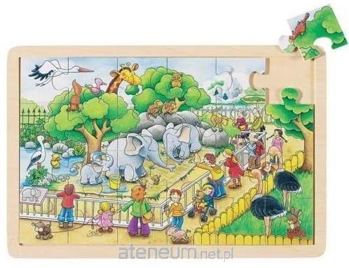 Puzzle układa się w drewnianej ramce. Zabawka edukacyjna rozwija myślenie logiczne oraz sprawnośc manualną.