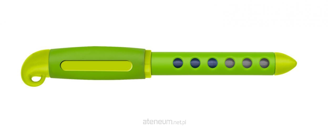 o ergonomiczne miejsce uchwytu z miękkiego materiału wspomagające prawidłowe trzymanie trzema palcami o idealne do nauki pisania o strefa uchwytu specjalnie stworzona z myślą o praworęcznych o wysokiej jakości irydowa stalówka - odporna na większy nacisk o na standardowe naboje z atramentem o okienka umożliwiające kontrolę ilości atramentu w naboju o specjalny kształt zatyczki ogranicza turlanie się pióra po ławce o jasnozielony kolor