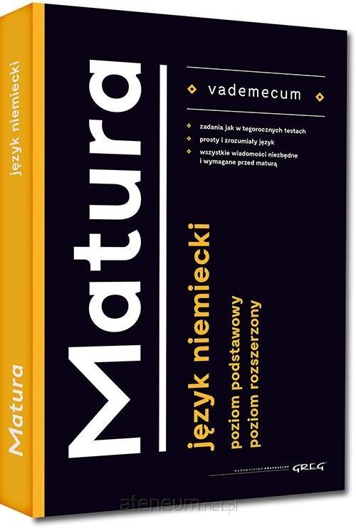 Vademecum Matura - język niemiecki Wydawnictwa GREG zawiera całość materiału potrzebnego do przygotowania się do matury w jej aktualnie obowiązującej formule. Całość jest zgodna z najnowszą podstawą programową i zawiera materiał dotyczący zarówno egzaminu ustnego, jak pisemnego.