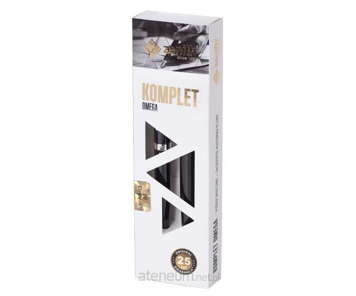 Eleganckie metalowe pióro wieczne i metalowy długopis Silver. Stalówka zakończona irydową kulką dla zapewnienia doskonałej jakości i łatwości pisania. Wymienne naboje atramentowe. Wymienny wkład wielkopojemny Zenith 4 z dokumentalnym tuszem w kolorze niebieskim gwarantującym trwałość zapisu. Długość linii pisania 4500 metrów. Kolory: czarny
