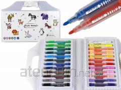 Marker z płynną kredą, do pisania po tablicach czarnych, białych, po szkle i powierzchniach plastikowych. Zmywalny wodą, jak zwykła kreda np. tradycyjną. Nasączalne końcówki fibrowe, bezwonny tusz pigmentowy, nie zawiera xylenu. Końcówka ścięta 8-5 mm, kolor biały.