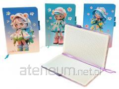 gramatura: 80 g, liczba stron: 192, okładka: twarda, materiał: skóra ekologiczna,wymiary: 145210 mm, pionowa gumka zamykająca, gumka na długopis,zaokrąglone rogi,wyklejka z czarnego papieru ozdobnego,wnętrze: kratka koperta na luźne karteczki,wstążka w kolorze okładki