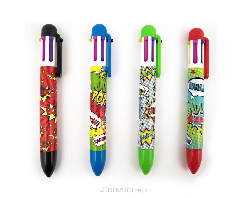 6 w 1 Długopis Mechaniczny. Komiks. 6 kolorów w jednym długopisie. 4 wzory kolorowych oprawek w komiksowe wzory. Towar wysyłany losowo,cena za sztukę