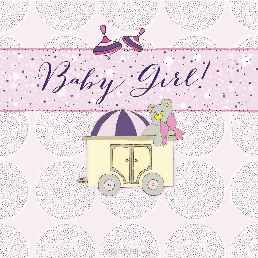 Karnet bez tekstu z kopertą, ręcznie robiony z kryształkiem Swarovski, Narodziny dziewczyna wagonik.