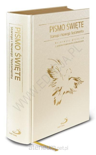Najnowszy przekład Pisma Świętego z komentarzem opracowany przez Zespół Biblistów Polskich z inicjatywy Towarzystwa Świętego Pawła. Pismo Święte dla całej rodziny - pierwszy przekład w trzecim tysiącleciu. Idea i cechy najnowszego przekładu Pisma Świętego: Maksymalna wierność tekstowi oryginalnemu, z uwzględnieniem w tłumaczeniu zasad współczesnego literackiego języka polskiego. Dbałość o to, aby jak najlepiej oddać po polsku sens oryginalnego tekstu biblijnego. Uwzględnienie w tłumaczeniu i komentarzach do tekstu biblijnego współczesnych badań nad Pismem Świętym. Unikanie w przypisach i komentarzach specjalistycznego języka teologicznego. Umieszczenie przed każdą księgą, a także przed zbiorami ksiąg (np. Ewangelie) zwięzłych wprowadzeń, pozwalających czytelnikowi uchwycić kontekst powstania danej księgi lub zbioru ksiąg, a także istotę zawartej w nich treści. Nowoczesny i przejrzysty układ graficzny pozwalający sprawniej korzystać z Pisma Świętego, tzn.: - biała, estetyczna oprawa ze złotym wyciskiem, - przypisy z informacjami koniecznymi do zrozumienia tekstu biblijnego, umieszczone na zewnętrznych marginesach stron, - komentarze do poszczególnych fragmentów, na które podzielony jest tekst biblijny, ukazujące główne myśli oraz przesłanie w nich zawarte, - odnośniki do innych miejsc w Biblii, umieszczone na wewnętrznych marginesach stron, - skrócone nazwy ksiąg wraz z zakresami tekstu biblijnego, umieszczone w dolnych rogach stron, ułatwiające szukanie wybranego miejsca w Piśmie Świętym. - słownik wyjaśniający 186 terminów biblijnych, tablice chronologiczne i mapy, które przybliżają kontekst historyczny i geograficzny wydarzeń biblijnych.