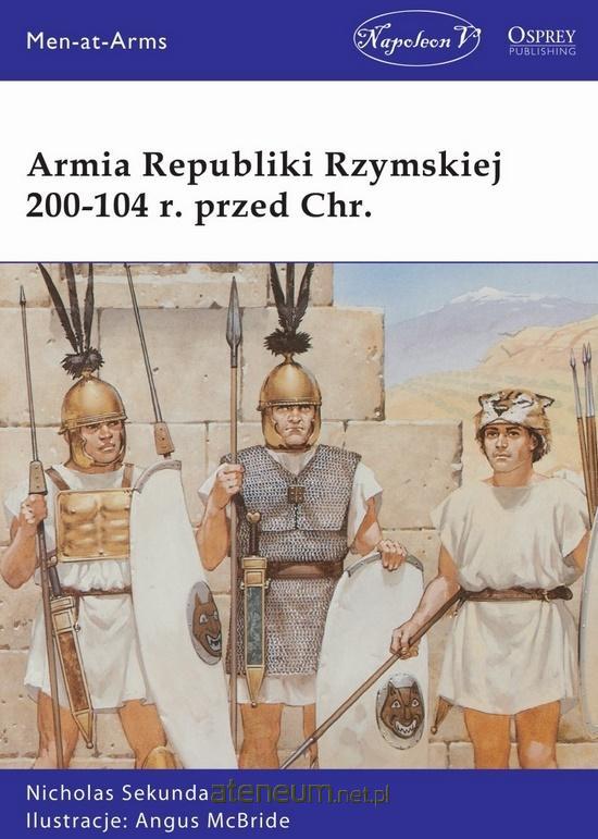 Głównym źródłem informacji o armii Republiki Rzymskiej jest szósta księga Dziejów greckiego historyka Polibiusza, napisana na krótko przed 150 rokiem przed Chr. Fascynujący tekst Nicholasa Sekundy w dużej mierze opiera się na tym ważnym źródle, przedstawiając wyposażenie i organizację armii Republiki Rzymskiej w okresie od 200 do 104 roku przed Chr. w czasie, kiedy Rzym wyrastał na światową potęgę. Ten fascynujący tom, zawierający liczne zdjęcia, ilustracje i całostronicowe plansze stworzone przez Angusa McBride, dotyka takich tematów jak rzymskie tarcze, hełmy, kirysy, nagolenniki, pilum, principales, czy też rzymska taktyka.