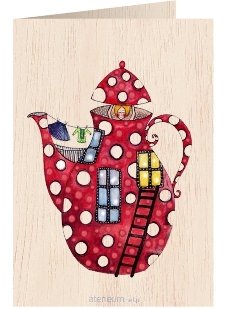 Karnet drewniany C6 + koperta Kobieta z żabą