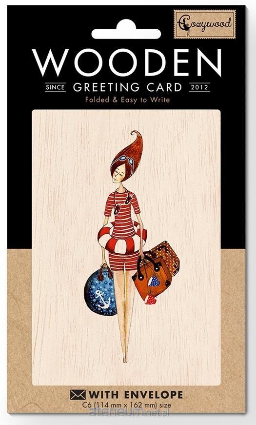 Karnet drewniany C6 + koperta Kobieta ze słoikiem