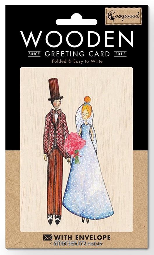 Karnet drewniany C6 + koperta Ślub Para w łódce