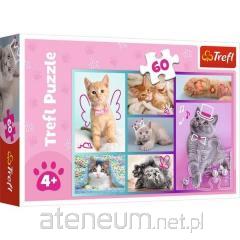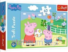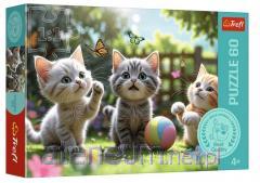 Puzzle 60 elementów z dinozaurami. Po ułożeniu powstanie obrazek o wymiarach 33x22cm. Wysoką jakość, nasycenie kolorów i bezpieczeństwo układania zapewnia kalandrowany papier odbijający światło, pokryty ekologicznymi farbami spożywczymi.