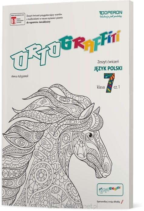 Ta publikacja to specjalnie stworzony zestaw ćwiczeń dla uczniów klas 7 mających trudności w uczeniu się. Praca Metodą Ortograffiti z użyciem zeszytów Ortograffiti 7. Język polski cz. 1 i cz. 2 zwiększy kompetencje ucznia w obszarze czytania, pisania, rozumienia dłuższego tekstu oraz poleceń, a także przetwarzania i wykorzystywania informacji w różny sposób. Ponadto zadania mają na celu usprawniać i kompensować funkcje poznawcze, takie jak: koncentracja uwagi, orientacja w przestrzeni, funkcje wzrokowe, ruchowe i słuchowe, a także doskonalić ucznia w trudnej dla niego materii grafii, ortografii i interpunkcji. W efekcie pracy uczeń zwiększy poziom wiedzy i umiejętności koniecznych do uzyskiwania pozytywnych ocen z przedmiotów szkolnych, właściwych dla jego potencjału oraz przezwyciężać trudności w uczeniu się nie tylko języka polskiego, ale też innych przedmiotów. Zadania w zeszytach zostały tak opracowane, by przygotować ucznia z trudnościami do egzaminu ósmoklasisty.