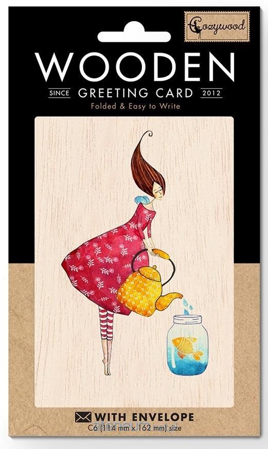 Karnet drewniany C6 + koperta Kobieta ze słoikiem