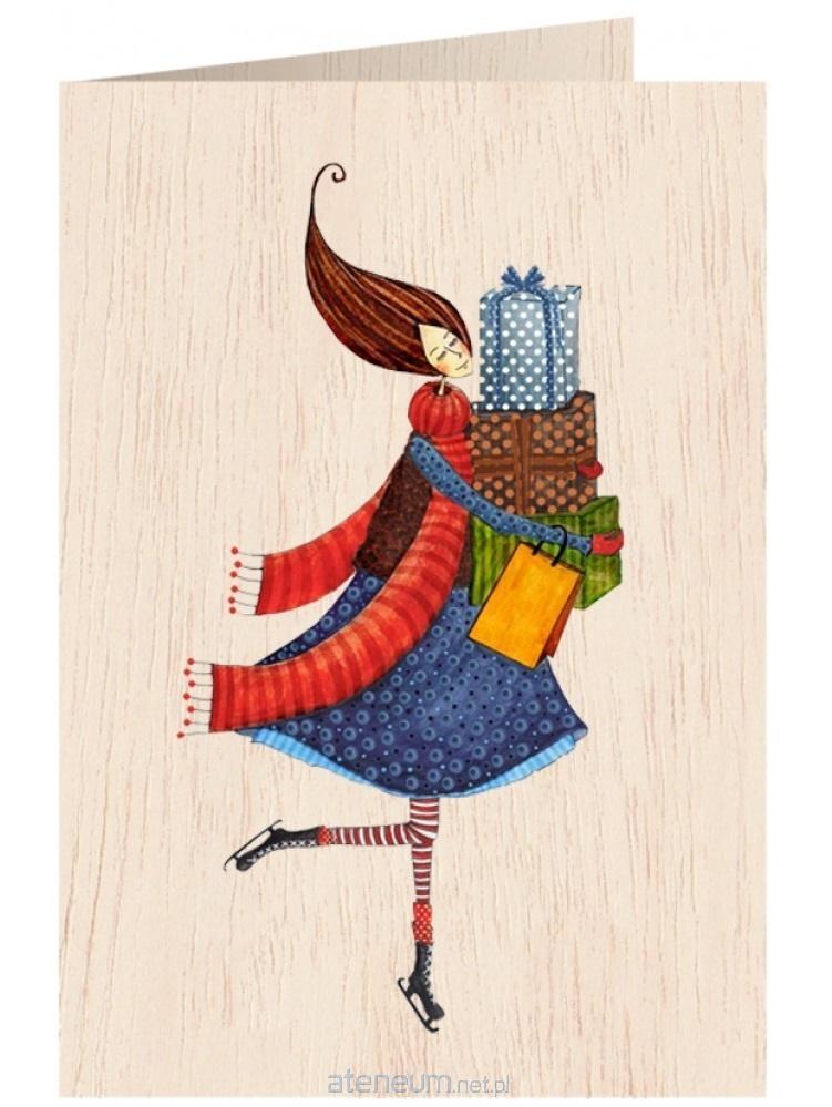 Karnet drewniany C6 + koperta Święta Kobieta Sanki