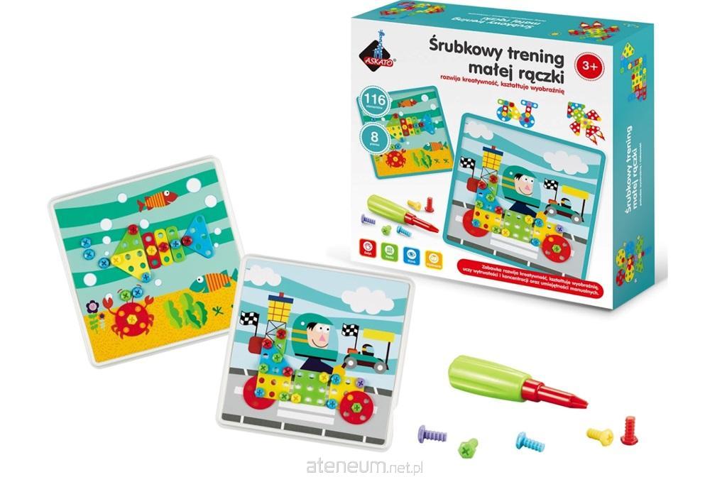 Zestaw zawiera aż 180 elementów: śruby w 5 kolorach, wkrętak i podkładki w 4 różnych kształtach i rozmiarach, 8 obrazków.