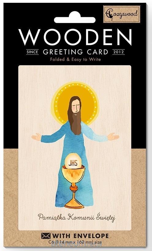 Karnet drewniany C6 Komunia dziewczynka + koperta