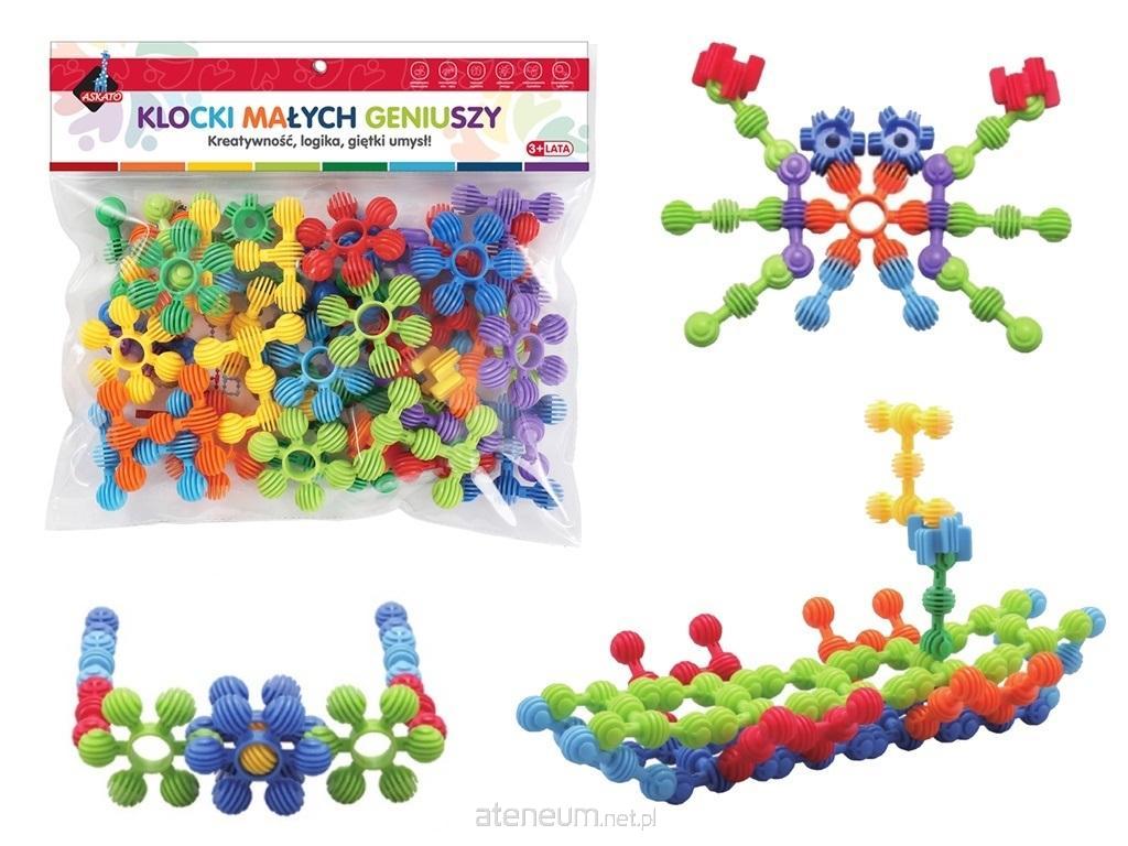 Edukacyjne klocki kulki 54 klocki w 8 kolorach pozwalają stworzyć fantastyczne, przestrzenne figury, zaczynając od tych prostych takich jak cyferki czy okulary poprzez nieco trudniejszego kraba lub statek. Zestaw zawiera 54 elementy w 8 kolorach. Wiek: 3+ Wymiary opakowania: 31x5x27 cm