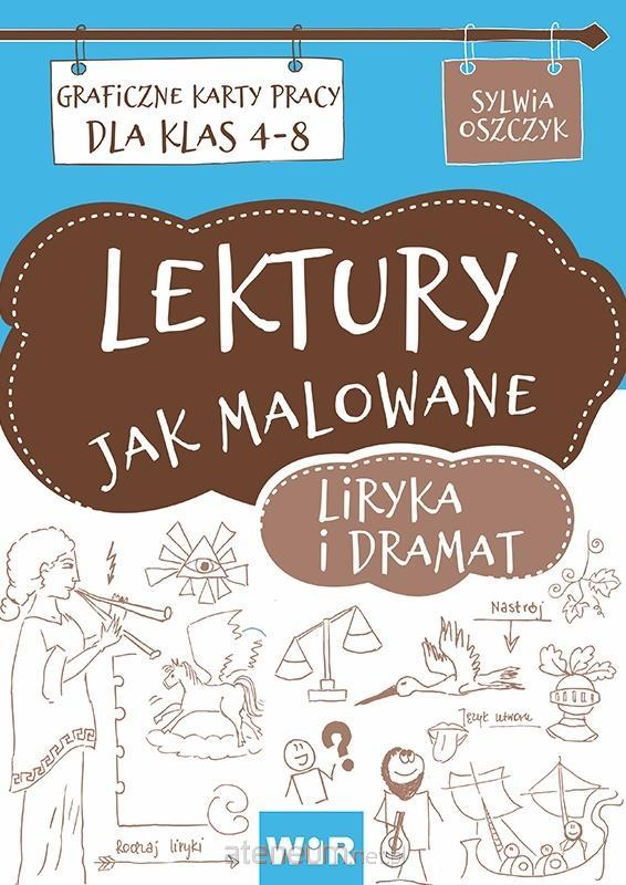 ĘZYK POLSKI INACZEJ! RYSUJ, NOTUJ I ZAPAMIĘTUJ! "LEKTURY JAK MALOWANE" to połączenie polonistycznej pasji z graficznym przekazywaniem wiedzy. Autorka sprawnie posługuje się techniką notowania wizualnego, dzięki czemu literackie treści są szybciej przyswajane. Wspomagając słowo obrazem, tworzymy skojarzenia, dzięki którym efektywniej się uczymy. Liryka to karty pracy do utworów: Baczyńskiego, Białoszewskiego, Fredry, Herberta, Kochanowskiego, Krasickiego, Leśmiana, Mickiewicza, Miłosza, Norwida, Przerwy-Tetmajera, Różewicza, Słowackiego, Szekspira, Wybickiego.