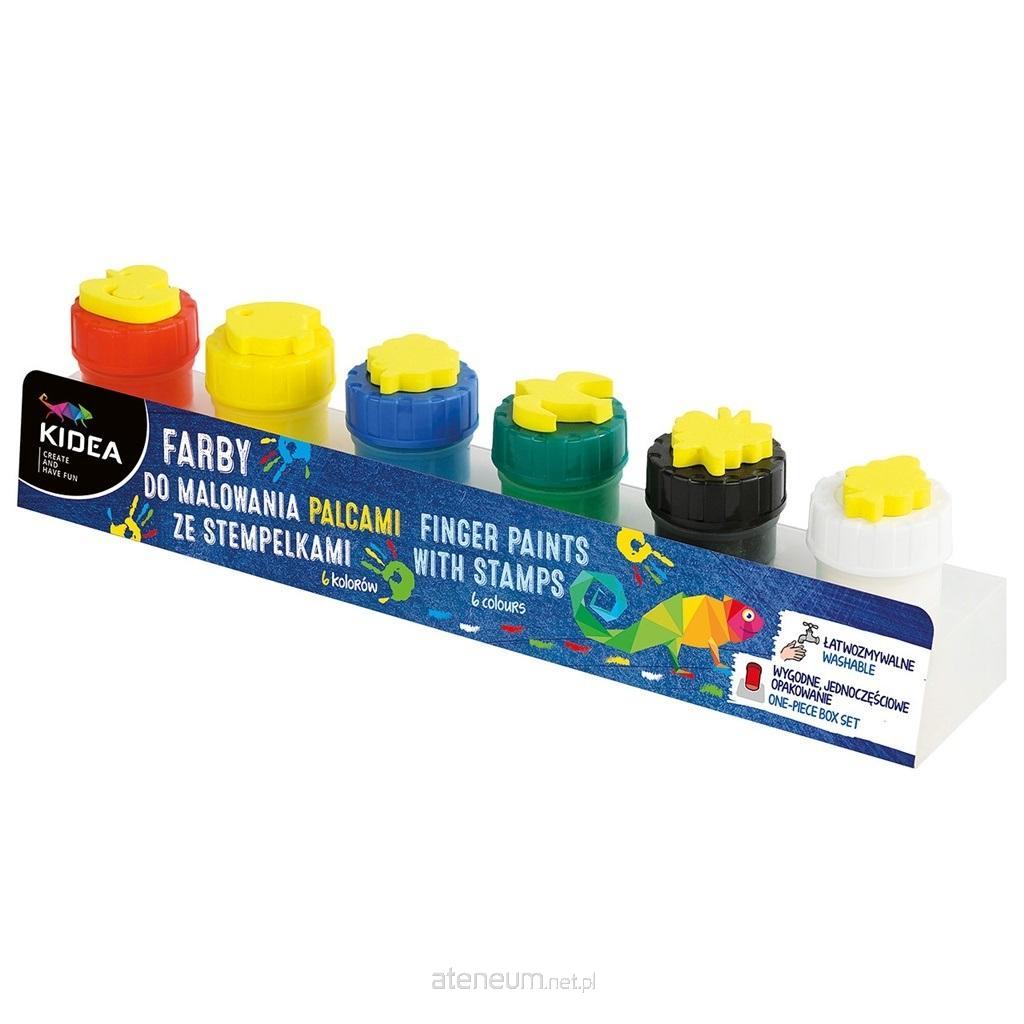 Farby do malowania palcami 6 szt. ze stempelkami, to zestaw sześciu kolorów: zielony, niebieski, czerwony, żółty, biały i czarny. Farby są wygodnym jednoczęściowym opakowaniu, dzięki czzemu dziecko nie pogubi już słoiczków. Na każdej zakrętce można znaleźć pieczątkę z różnymi kształtami: rybi, kaczuszki, drzewka, liścia, ptaka czy motylka. Farby przeszyły bardzo restrykcyjne testy co pozwala nawet małym dzieciom korzystać z produktów, ćwiczyć swoje zdolności manualne i pobudzać sensorykę.