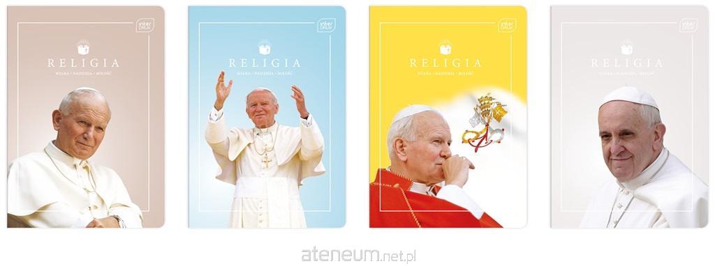 Format: A5. Liczba kartek: 32. Zadruk w kratkę. Okładka pokryta lakierem UV. Zaokrąglone rogi. 2 serie: Jan Paweł II / Franciszek oraz tradycyjne motywy religijne.