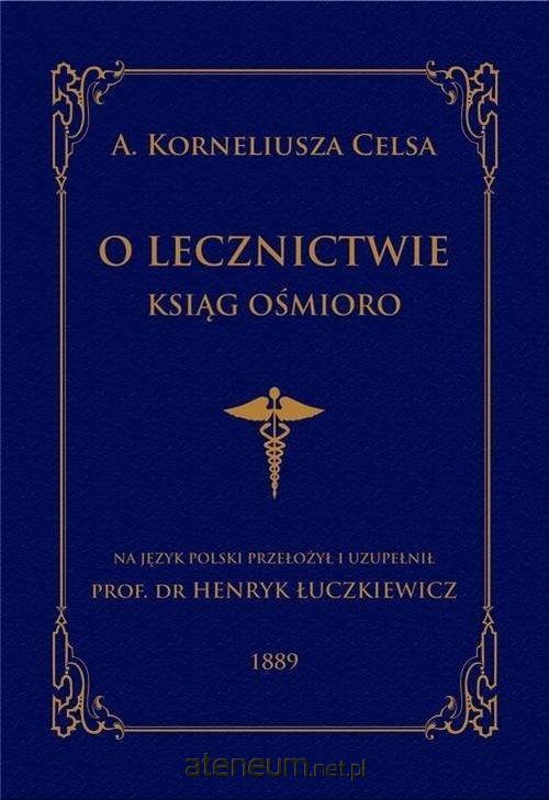 Reprint oryginału z 1889 r. przetłumaczone przez p. prof. dr. Henryka Łuczkiewicza. Jest to tłumaczenie/ przekład starożytnego klasyka lekarskiego Celsusa, zwanego rzymskim Hipokratesem. Tytuł do XVIII wieku był najwybitniejszym dziełem medycznym, który ze względu na szczegółowo opisaną i skompilowaną wiedzę medyczną był traktowany jako podręcznik lekarski. Zawiera nie tylko opisy zielarskich sposobów zwalczania i zapobiegania chorób, ale również przedstawione zostały opisy chirurgiczne i narzezia potrzebne do wykonania wszelkich operacji.