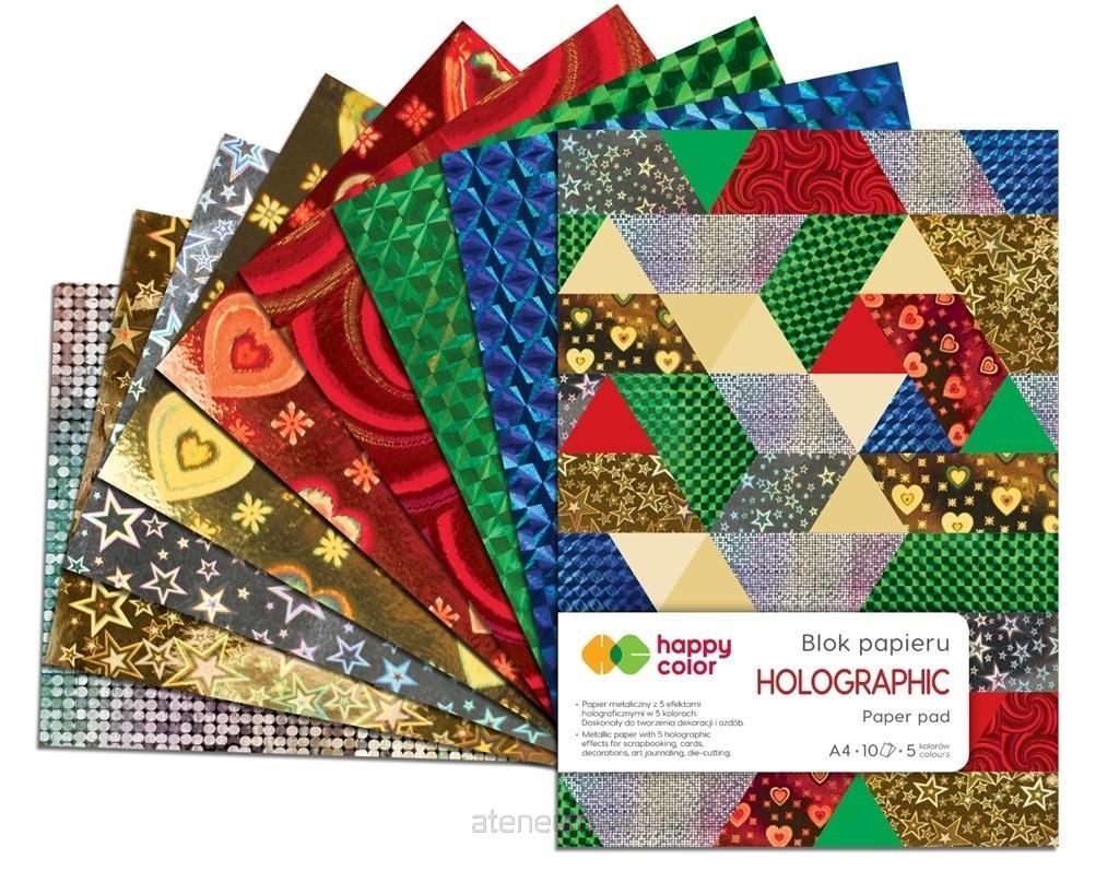 Blok A4/10K Holographic 70g HAPPY COLOR 5 kolorów, 5 motywów.