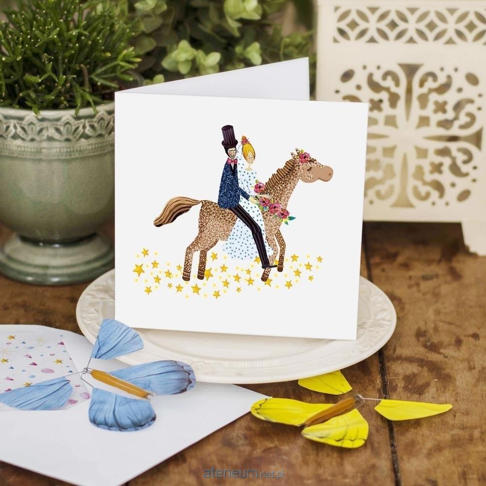 Karnet kwadrat z latającym motylkiem Ślub koń