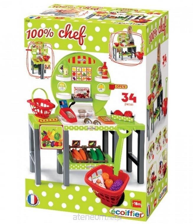 Sklepik można rozkładać na 3 różne sposoby, odpowiednio rozstawiając blaty. W zestawie można znaleźć liczne akcesoria do urozmaicenia zabawy takie jak: - półki sklepowe - kasa - dwie skrzynki na warzywa i owoce - czytnik kart - monety - owoce i warzywa - ręczny koszyk na zakupy - koszyk na zakupy na kółkach - smartfon i wiele innych.. Łącznie znajdziemy tu aż 34 różne akcesoria.
