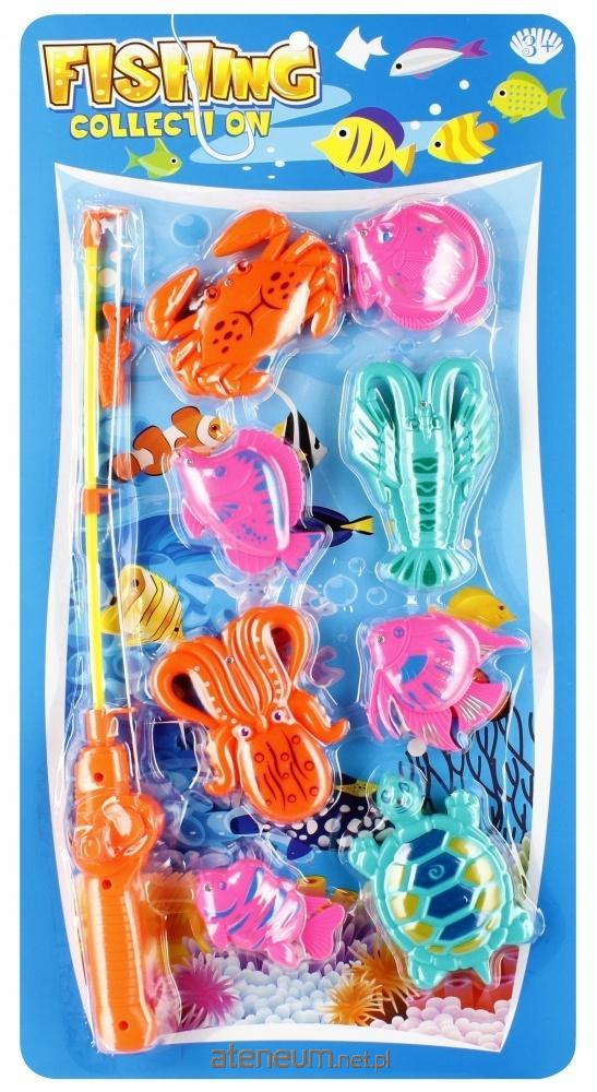 W zestawie znajdują się wędka oraz 4 rybki i żółw wodny. Wszystkie zwierzątka wodne posiadają magnes, dzięki którym łatwo złowić je na wędkę która również posiada magnes. Produkty wykonane z plastiku.
