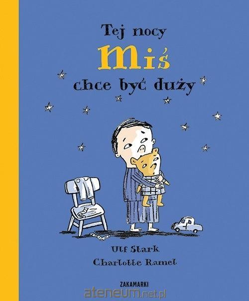Tej nocy Miś chce być duży i spać sam. Jednak gdy zapada zmrok, ciemność wypełnia się odgłosami. Co to za dźwięk dochodzi z kuchni? Prosta, ciepła historia o zasypianiu. O wieczornych lękach, o bezsenności, o patrzeniu na gwiazdy i nocnym buszowaniu w lodówce. Aż w końcu... przychodzi sen!