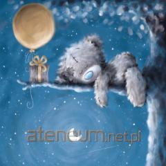 Kartka urodzinowa Miś na gałęzi z prezentem